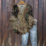 Mangas de babados arejadas: Esta blusa com mangas de babados em camadas é charmosa e leve ao mesmo tempo. As mangas esvoaçantes proporcionam movimento e feminilidade, permitindo que você se mantenha fresca enquanto atrai todos os olhares. Conforto estiloso em movimento.