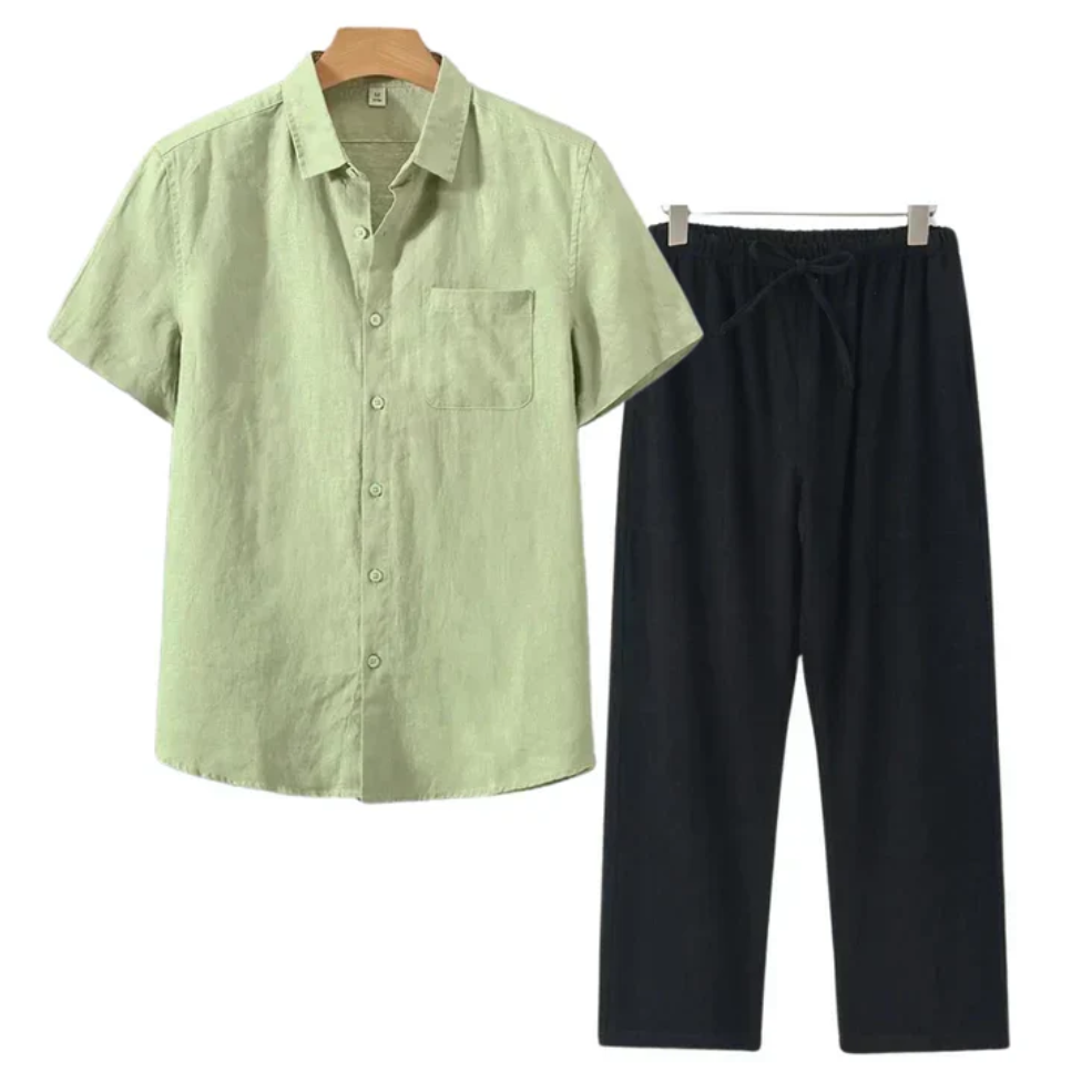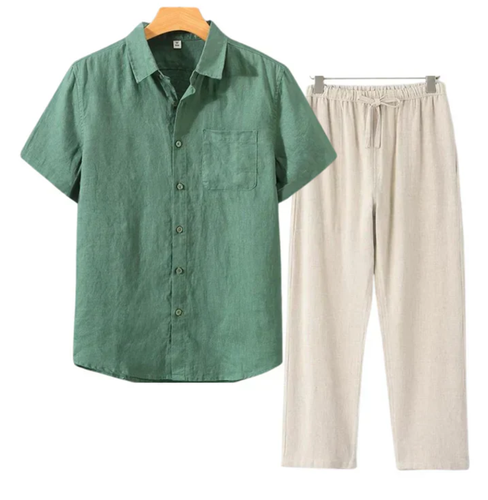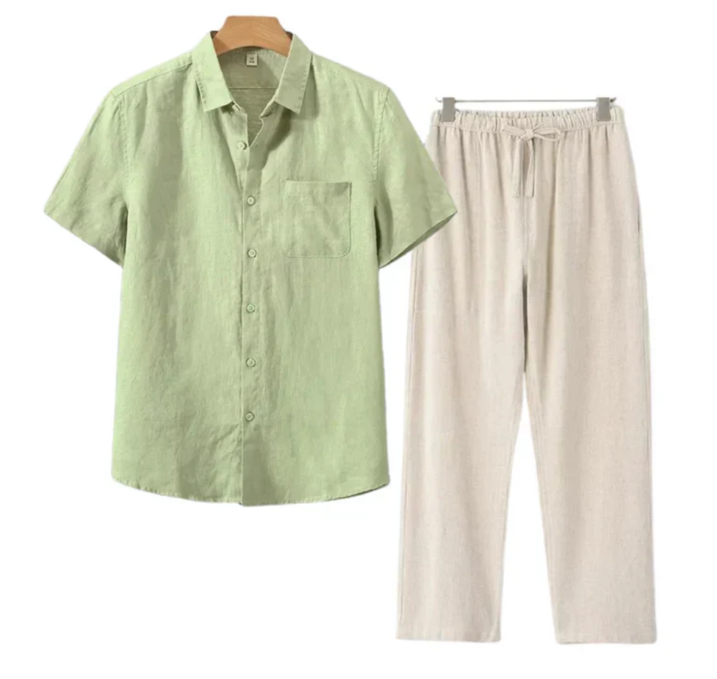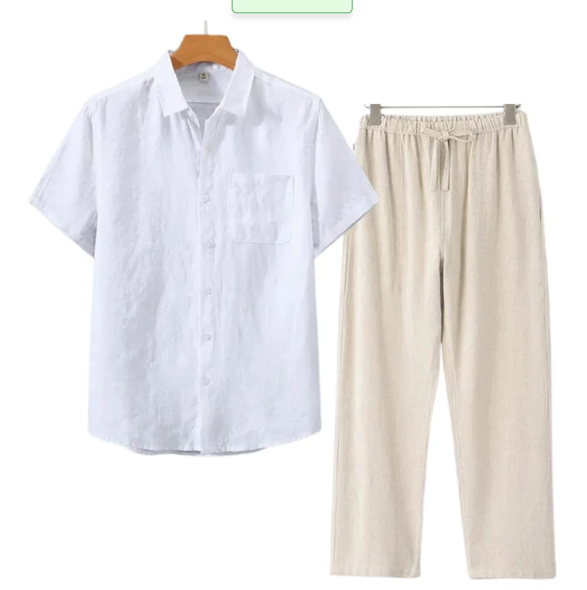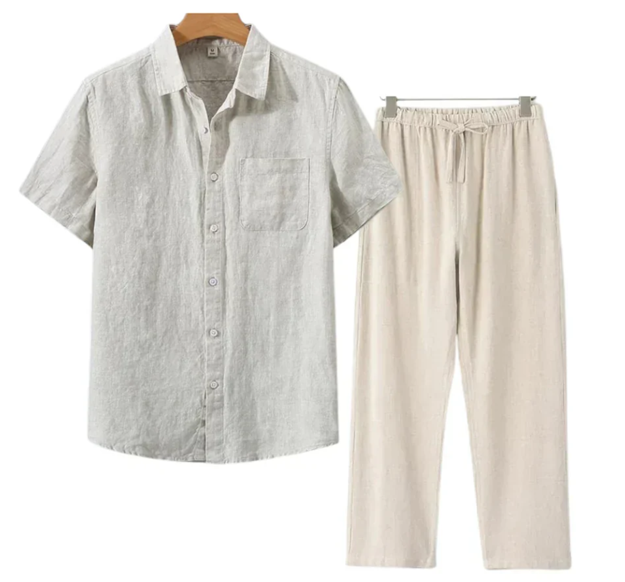 Eleve o seu estilo diário agora — o Conjunto de Linho Torino é a sua escolha para luxo discreto e conforto durante todo o dia.