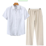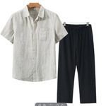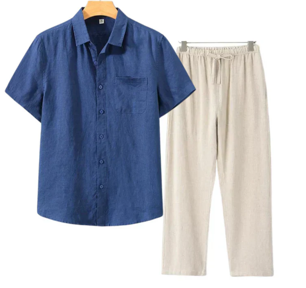 Tecido de Linho Premium: Mantenha-se fresco e respirável o dia todo com linho de alta qualidade, perfeito para dias quentes ou noites descontraídas.