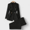 Entre na elegância sem esforço com o conjunto de casaco e calça Eline – um conjunto versátil, projetado para mulheres modernas que valorizam tanto o estilo quanto o conforto. Com um casaco sob medida e calças combinando, este conjunto oferece um silhueta elegante e, ao mesmo tempo, conforto durante todo o dia. Seja para uma reunião de negócios ou um passeio chique e descontraído, o conjunto Eline garante que você esteja sempre bem vestida e confiante ao longo do dia.