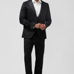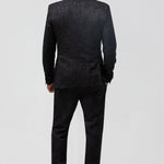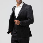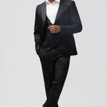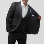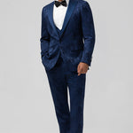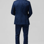 Fato Masculino em Jacquard Azul Escuro com Lapela de Pico em 3 Peças