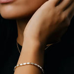 Nossa Pulseira de Tênis Baguette é o acessório perfeito para complementar qualquer look, seja para um evento formal ou para um estilo mais casual. Com seu design atemporal e acabamento moderno, esta pulseira é o epítome da elegância sem esforço.