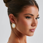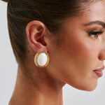 Meninas legais precisam dos brincos Eloise, feitos em metal e resina, com um formato oval. O acessório perfeito para elevar qualquer look, o centro de pedra lisa é complementado por uma moldura dourada texturizada.