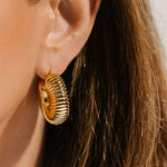 A peça básica perfeita com um toque especial, nossos brincos de argola canelados! Eleve seu estilo com os Brincos Luana, elegantemente banhados a ouro de 14k. Esses brincos de argola clássicos apresentam um design elegante e atemporal, perfeito para qualquer ocasião. Adicionando um toque de sofisticação ao seu visual, são uma adição versátil e chique à sua coleção de joias.