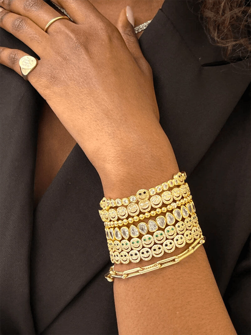 Conjunto com pedras de zircônia cúbica e disponível em diferentes variações de cores. Ilumine seu dia com a Pulseira Smile. Banho em ouro de 14k, essa pulseira combina elegância com um toque lúdico de forma descomplicada. Perfeita para uso diário, adiciona um acento alegre e estiloso a qualquer roupa.