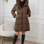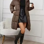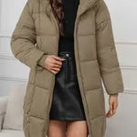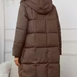 O corte reto alonga a figura, o capuz estruturado protege do vento e o tecido acolchoado oferece isolamento ideal sem perder leveza. Uma peça versátil, pronta para acompanhar o seu ritmo com elegância.