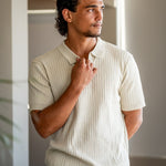 Um polo tricotado projetado para uma sofisticação discreta. O canelado vertical adiciona profundidade, enquanto o corte relaxado garante conforto ao longo do dia. Perfeito para sobrepor ou usar sozinho, este básico versátil equilibra conforto com um apelo atemporal.