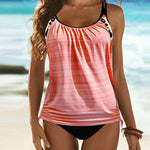 O tankini oferece excelente cobertura e suporte graças aos copos embutidos e alças ajustáveis, que garantem um ajuste perfeito e conforto durante todo o dia.