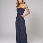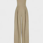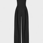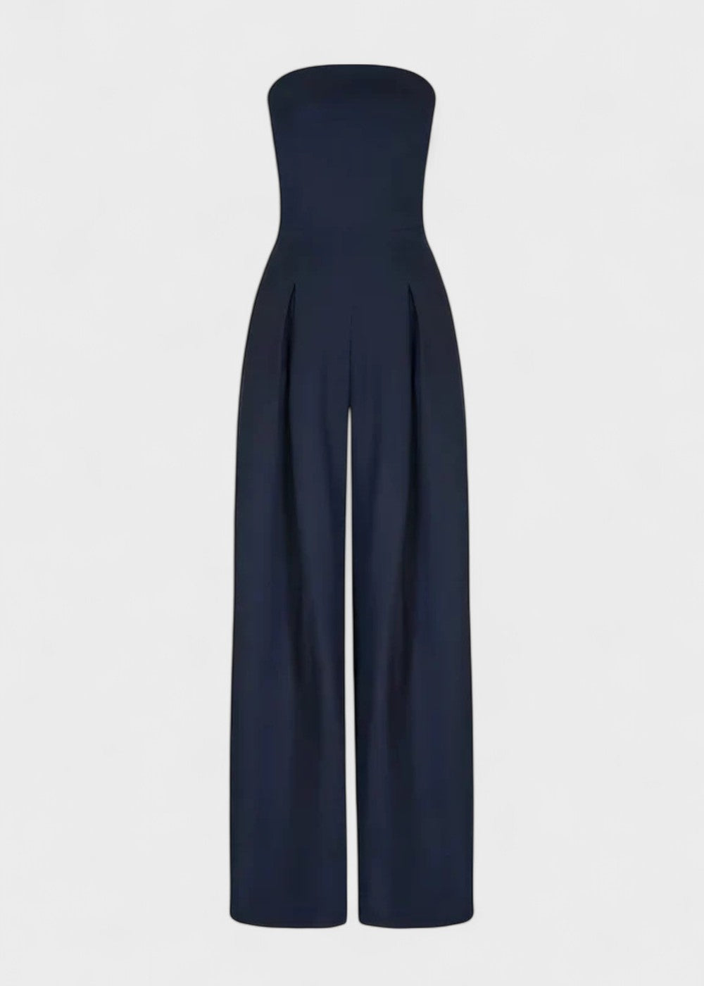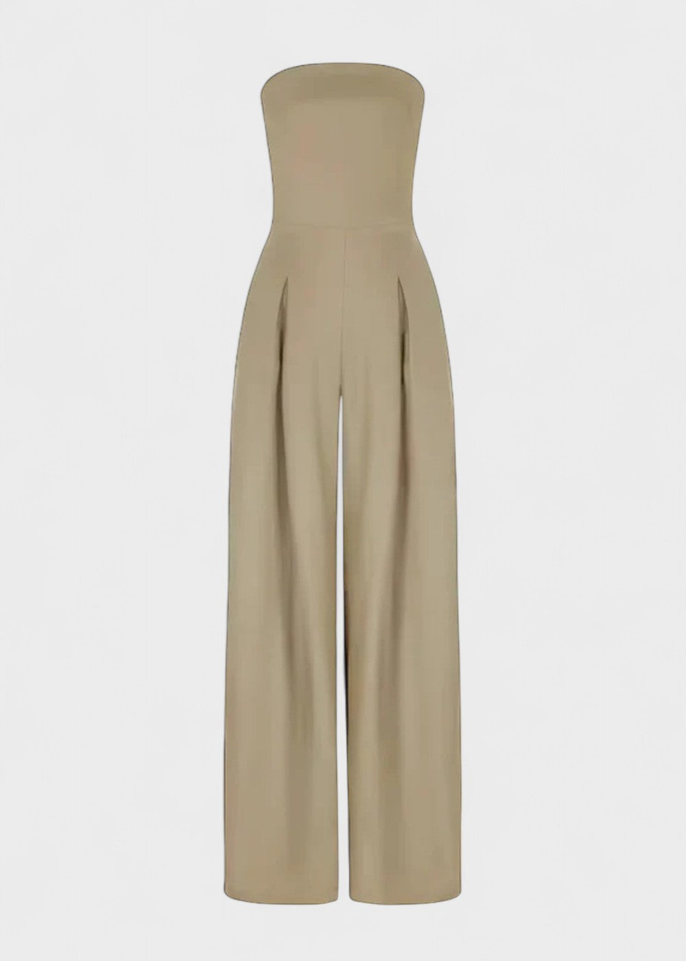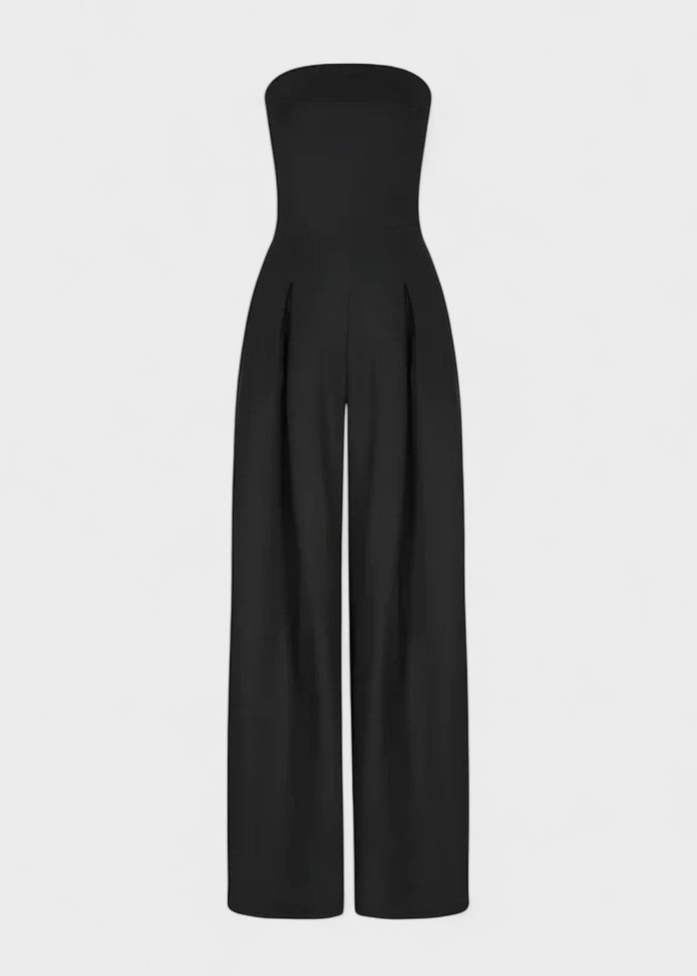 O macacão sem alças com uma perna larga é o epítome da elegância discreta e do poder moderno. Com o seu corte ao ombro, perna esvoaçante e cintura cingida, cada conjunto torna-se num momento de alta moda. Ideal para festas no terraço, jantares elegantes ou como uma declaração simples em eventos.