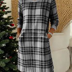 Helena - Vestido Xadrez com Mangas Longas