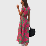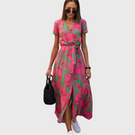 Luisa - Vestido longo elegante com mangas curtas e cinto