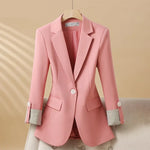 Coloca-o e sentes-te imediatamente composta—linhas elegantes que afinam a tua silhueta, um único botão que mantém tudo no lugar e punhos que se viram para revelar um contraste de riscas ousado. É a peça que te faz parecer que planeaste cada detalhe, mesmo quando não o fizeste.