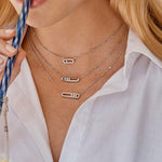 Nosso requintado colar Melissa em ouro amarelo, prata ou ouro rosé e diamantes é caracterizado por três diamantes brilhantes de corte movíveis. O design filigrana com uma elegante configuração pavé destaca o brilho dos diamantes.
