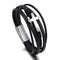 A Pulseira de Cruz da Fé é feita de aço titânio, couro e um fecho magnético.