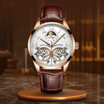 O relógio mecânico de negócios com design Tourbillon é mais do que um simples relógio – é uma expressão de artesanato e sofisticação. Com um design Tourbillon fascinante, este relógio exibe a complexa mecânica do seu movimento automático de corda automática, tornando-o funcional e cativante. A elegante bracelete em couro adiciona um toque de requinte e proporciona conforto durante todo o dia, seja numa reunião de negócios ou num evento formal. Com um deslumbrante mostrador de fases da lua, este relógio eleva o seu estilo a outro nível e oferece uma visão única do tempo e do espaço.