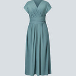 Corte favorecedor e elegante: O corte elegante na cintura destaca as linhas naturais. Confere uma forma de ampulheta suave e elegante. O decote em V adiciona um toque de sedução, mantendo a elegância. Este corte fica bem em todos os tipos de corpo. Um visual leve e gracioso.