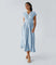 Comprimento midi refinado: A bainha abaixo do joelho proporciona um visual elegante e versátil. Ideal para casamentos, jantares e eventos diurnos. Oferece cobertura suficiente enquanto mostra a sua silhueta. Este comprimento equilibra elegância e conforto.