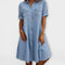Vestido de Manga Curta com Gola em Cor Sólida e Botão