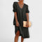 • Decote em V com detalhes de botão: Destaca o decote e confere um toque estiloso ao vestido.