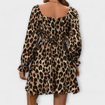 Impressione com o vestido Eline! Este vestido elegante em uma marcante estampa de onça combina um sofisticado decote quadrado com uma saia feminina em A. As mangas longas fazem dele a escolha perfeita para as estações de outono e inverno.