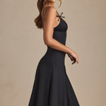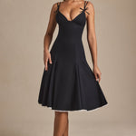 Vestido Midi A-Line com Detalhe de Laço em Preto
